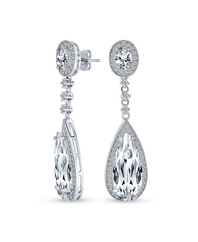 Bling Jewelry Art Deco Red Cubic Zirconia Halo Long Pear Solitaire Teardrop Cz Statement Dangle Chandelier Earrings Pageant Party