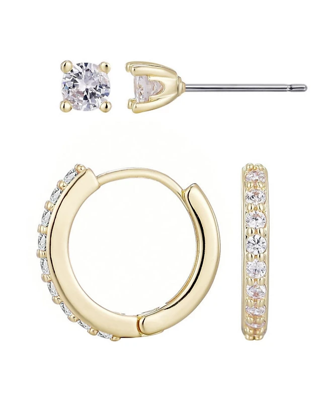 Adornia Gold Plated Cubic Zirconia Huggie and Solitaire Stud Set