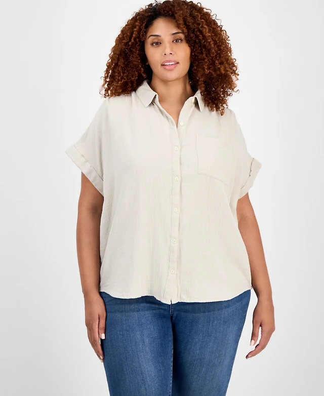 Style & Co Plus Size Button-Front Short-Sleeve Shirt, Exclusively at Macy's