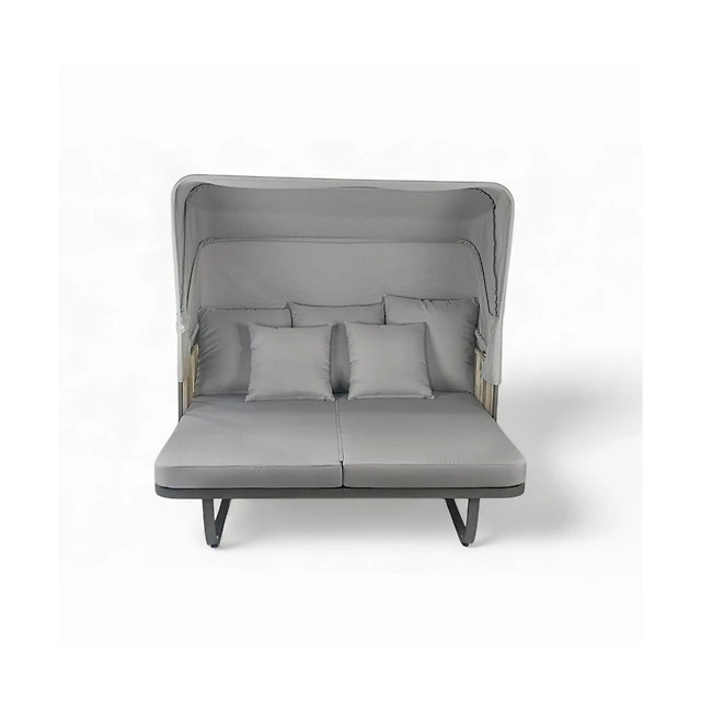 Chic Crate - Rattan Daybed Outdoor Sectional Sofa Set - Retractable Canopy with Removable Cushion & Separate Seating for Backyard & Poolside (Beige)