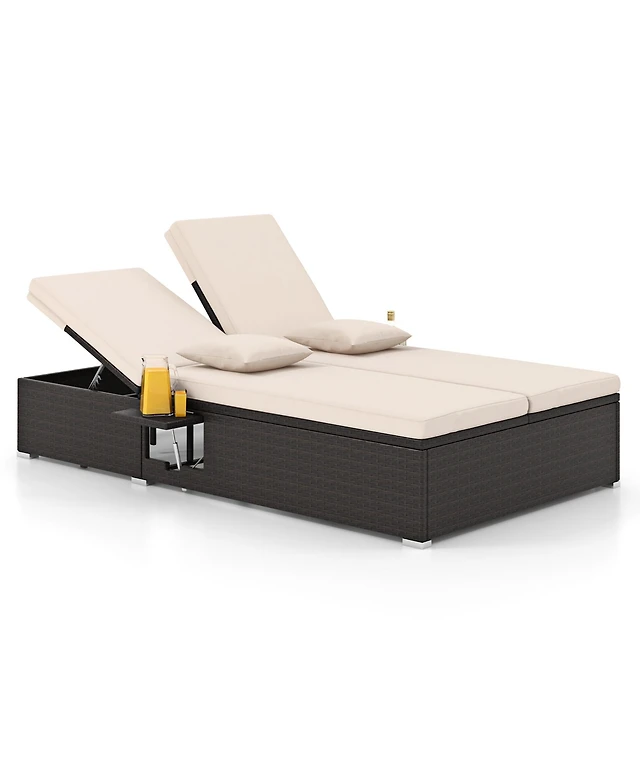 Gymax Outdoor Patio Daybed Pe Wicker Double Chaise Lounge w/ Adjustable Backrests