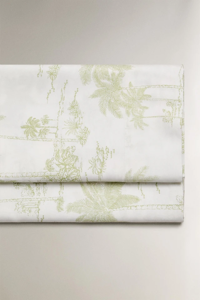 TOILE DE JOUY SATEEN FLAT SHEET WITH PALM TREES