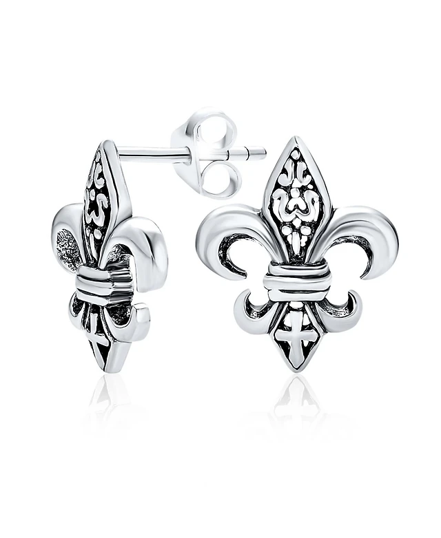 Bling Jewelry Fleur De Lis Stud Earrings in Oxidized Sterling Silver