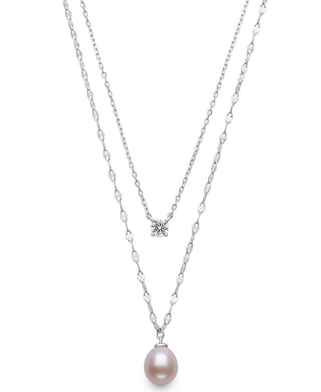 Belle de Mer Freshwater Blush Pink Drop Pearl (8-9mm) and Lab Created Sapphire Necklace in Sterling Silver