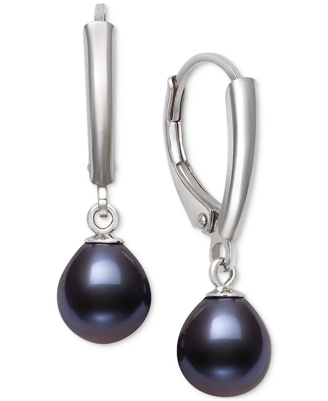 Belle de Mer Dyed Cultured Freshwater Pearl (7-8mm) Leverback Drop Earrings Sterling Silver