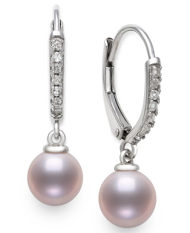 Belle de Mer Cultured Freshwater Blush Pink Pearl (8-9mm) and Lab Created Sapphire Drop Earrings in Sterling Silver