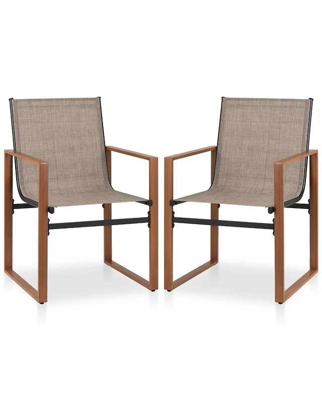 Yaheetech Set of 2 Outdoor Texteline Folding Dining Chairs with Backrest/ Armrests Gray