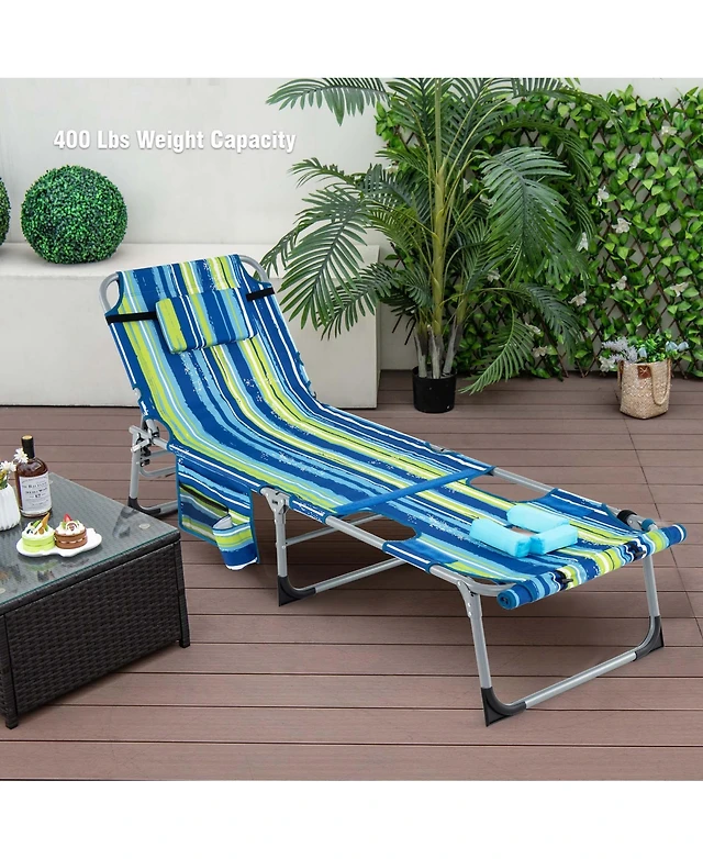 Inolait Adjustable Outdoor Lightweight Folding Chaise Lounge Chair with Pillow