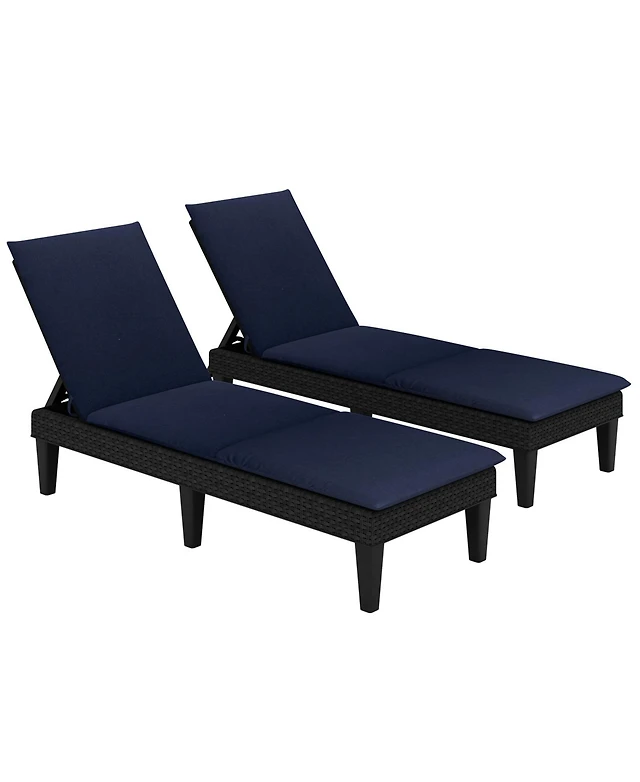 Gymax 2PCS Patio Lounge Chair Recliner Chair w/ 3-Position Adjustable Backrest & Cushion