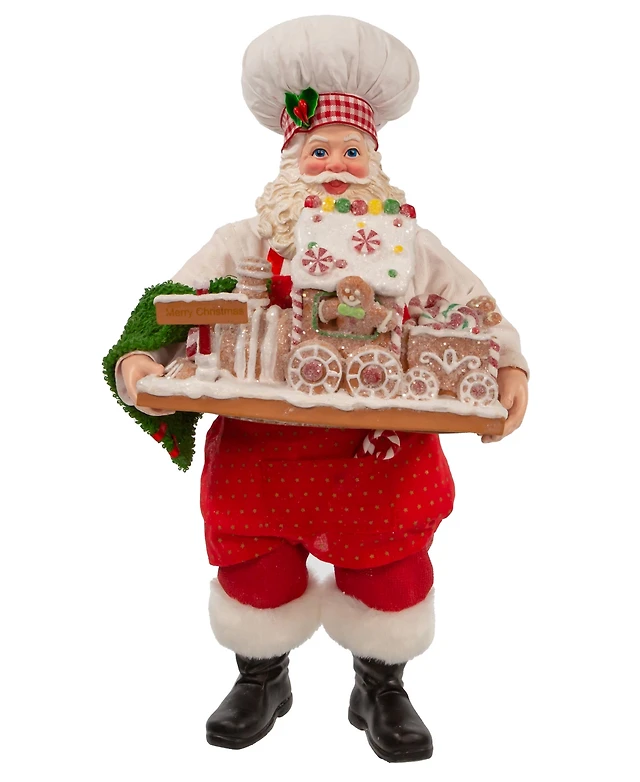 Kurt Adler 11-Inch Fabriche Chef Santa Holding Two Trays of Pizza