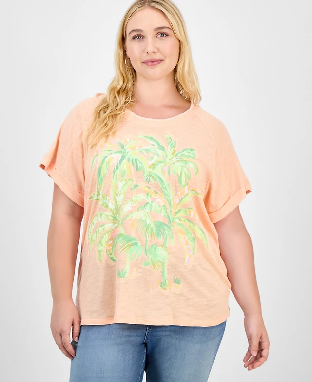 Democracy Trendy Plus Short-Sleeve Rolled-Cuff Graphic Tee