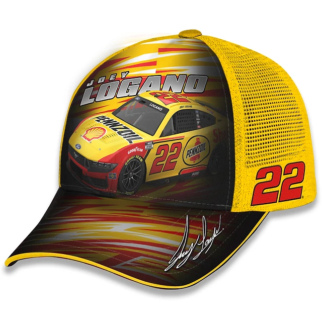 Checkered Flag Sports Big Boys and Girls Yellow Joey Logano Shell-Pennzoil Adjustable Trucker Hat