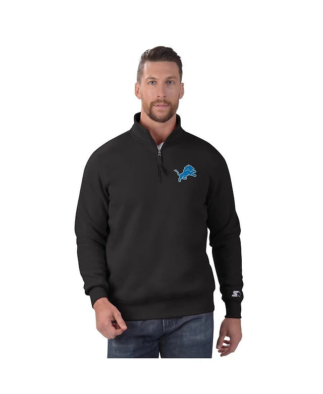 Starter Men's Black Detroit Lions Distressed Classic Full-Zip Hoodie