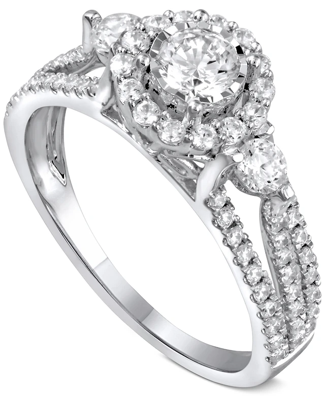 TruMiracle Diamond Channel Halo Engagement Ring (1 ct. t.w.) 14k White Gold