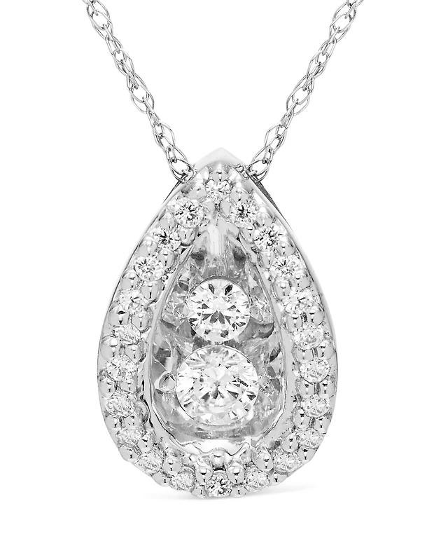 Twinkling Diamond Star Diamond Teardrop Halo 18" Pendant Necklace (1/4 ct. t.w.) in 10k White Gold