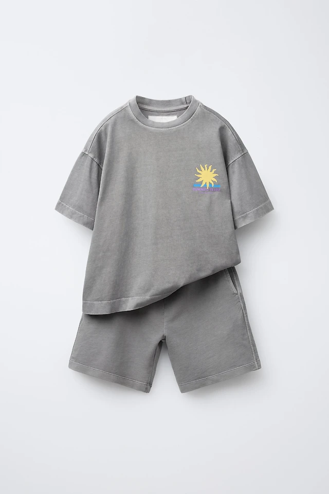 GARMENT DYE PRINTED T-SHIRT AND BERMUDA SET