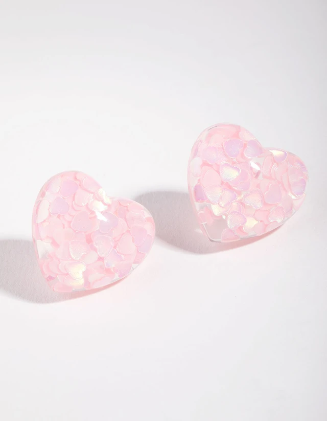 Acrylic Glitter Heart Stud Earrings