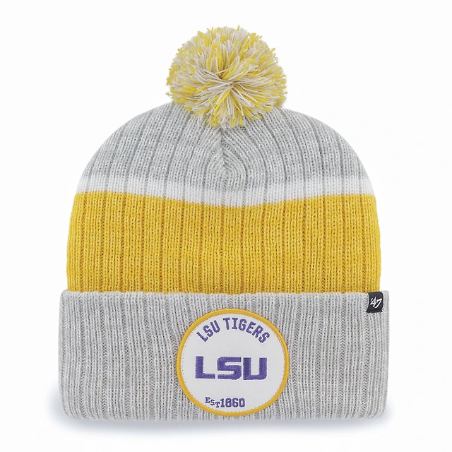 Men's '47 Gray LSU Tigers Holcomb Cuffed Knit Hat with Pom