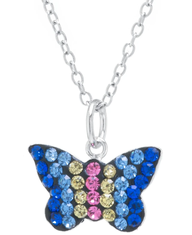 Multicolor Pave Crystal Butterfly Pendant With 18" Chain set in Sterling Silver