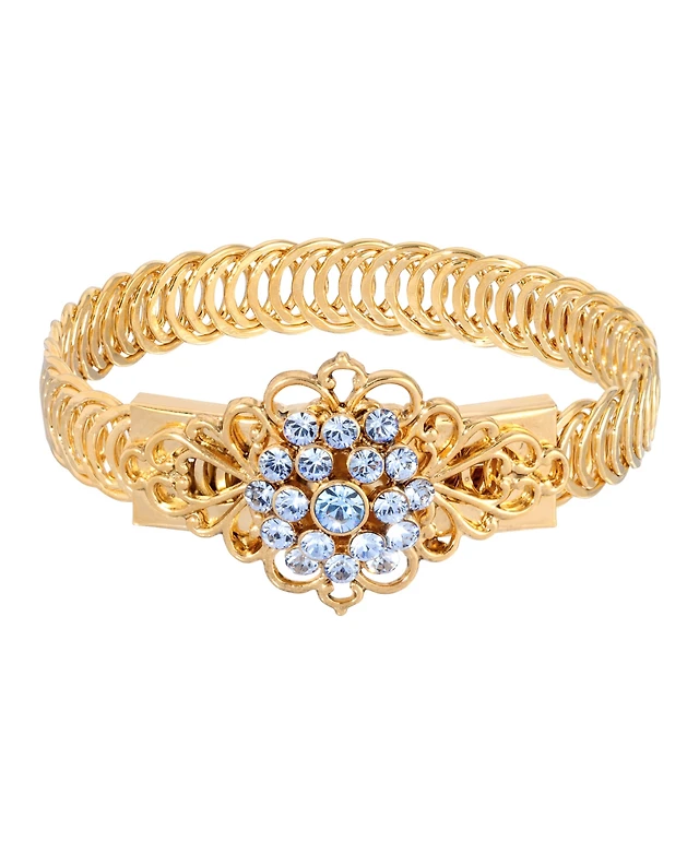 2028 14K Gold-tone Crystal Flower Overlay Belt Bracelet
