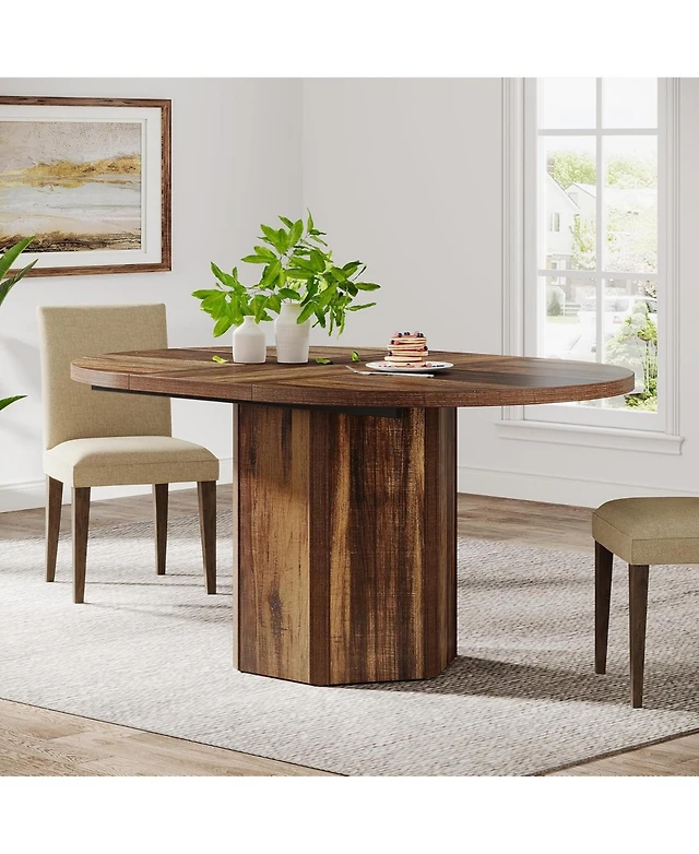 Tribesigns Round Dining Table for 4-6, 47.24-Inch Farmhouse Kitchen Table, Wood with Pedestal Base, Small Dinner