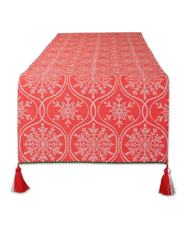 Design Imports Joyful Snowflakes Jacquard Collection for Everyday Use, Holidays and Dinner Parties, Table Runner, 14" x 108"