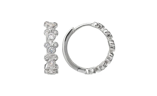 Disney Mickey Mouse Silver Plated Cubic Zirconia Endless Hoop Earrings