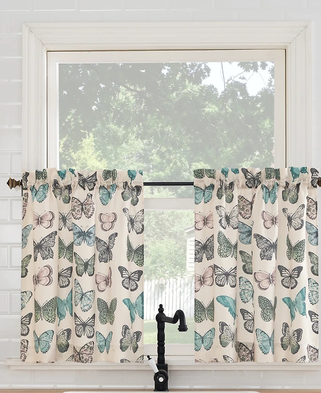 Magdalena Butterfly Print Sheer Rod Pocket Kitchen Curtain Swag Pair