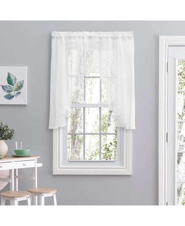 Kate Aurora Premium Rod Pocket Sheer Voile Single Window Curtain Panel - 84 in. Long - White