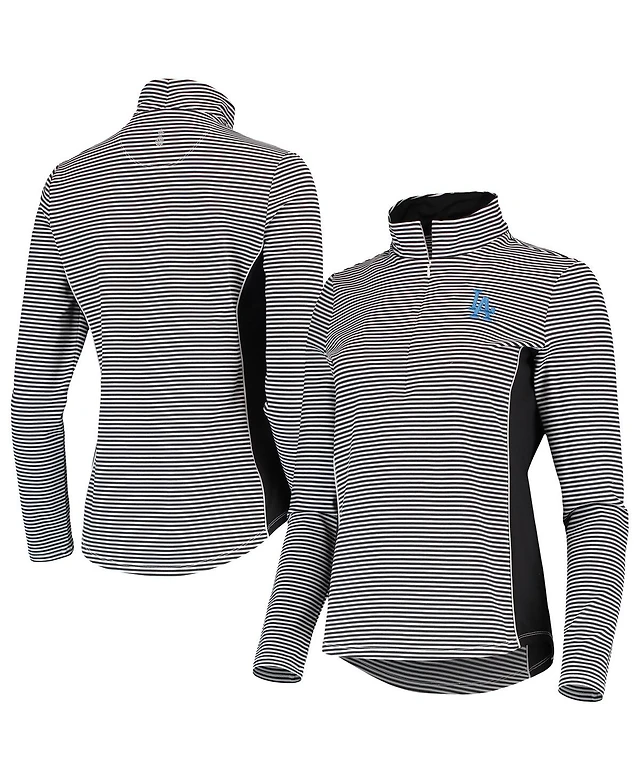 Women's Tommy Bahama Black Los Angeles Dodgers Aubrey Stripe Block IslandZone Half-Zip Jacket