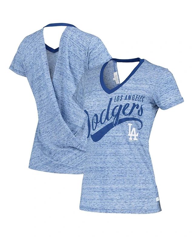 Women's Royal Los Angeles Dodgers Hail Mary V-Neck Back Wrap T-shirt