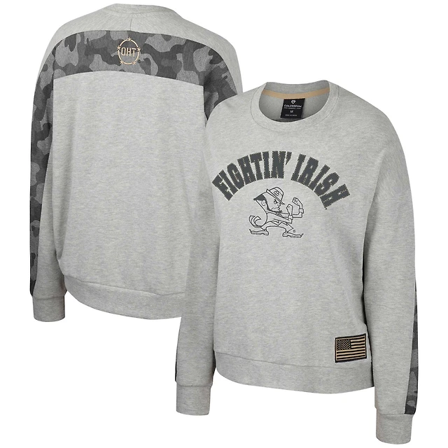 Women's Colosseum Heather Gray Notre Dame Fighting Irish OHT Military Appreciation Flag Rank Dolman Pullover Sweatshirt
