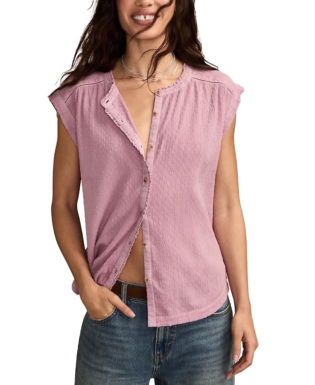 Lucky Brand Women's Dolman Ruffle Button Down Top