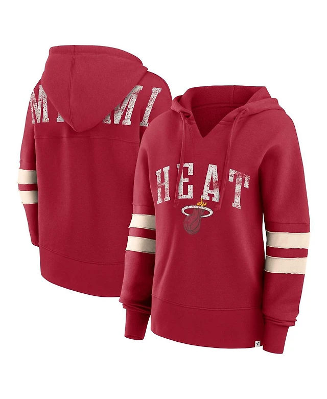 Women's Fanatics Red Distressed Miami Heat Bold Move Dolman V-Neck Pullover Hoodie