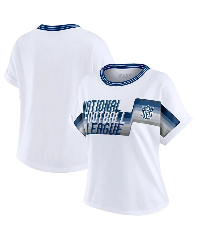 Wear by Erin Andrews Women's White Nfl Cropped Center Stripe Dolman T-Shirt