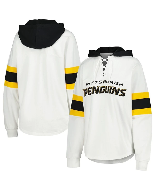 G-iii 4Her by Carl Banks Women's White/Black Pittsburgh Penguins Goal Zone Long Sleeve Lace-Up Hoodie T-Shirt