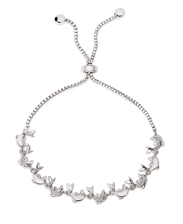 Diamond Accent Dolphin Bolo Adjustable Bracelet Silver-Plated Brass