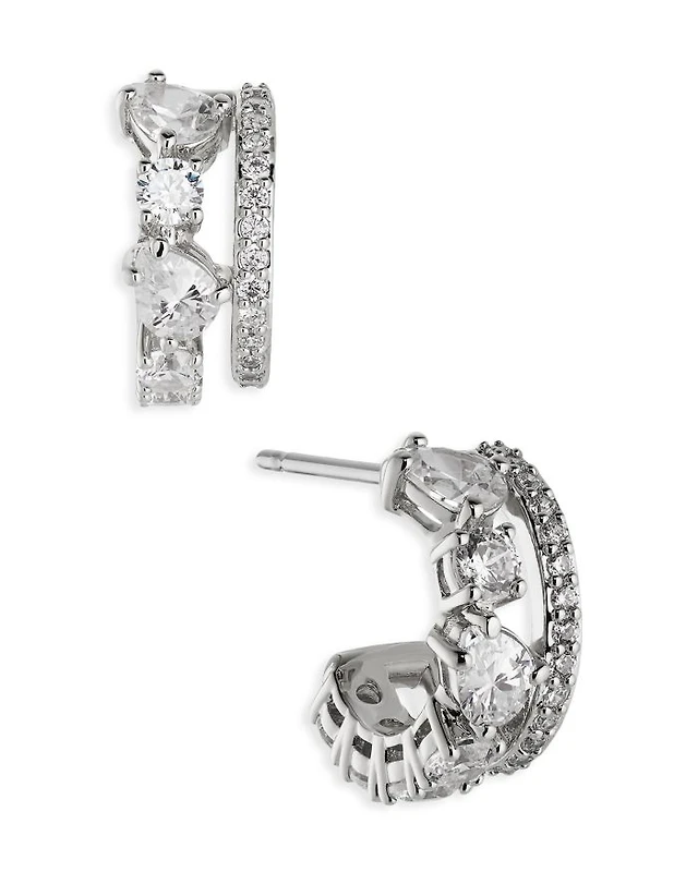 Double Diamond Fringe Pear Drop Huggie Earrings 18k White Gold