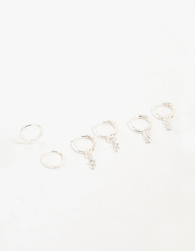 Silver Dainty Round Cubic Zirconia Hoop Earrings 3-Pack