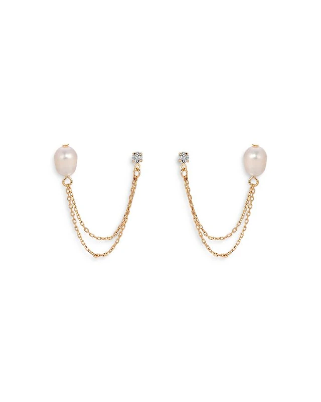 Double Post Cultured Freshwater Pearl and Crystal Draped Chain Earrings