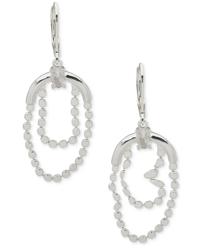 Anne Klein Silver-Tone Double Flat Chain Cubic Zirconia Drop Earrings