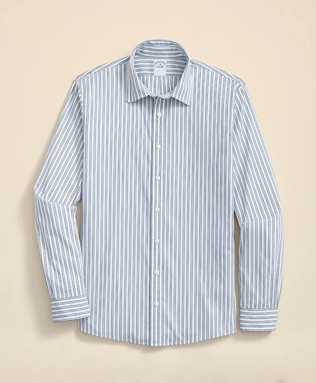 Stretch Cotton Non-Iron Oxford Polo Button Down Collar, Striped Shirt