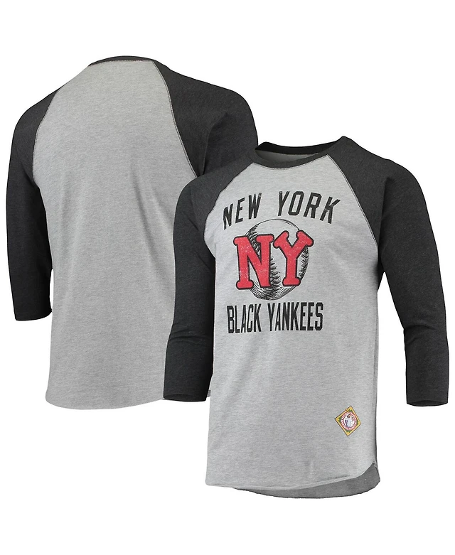 Men's Stitches Heather Gray, Black New York Black Yankees Negro League Wordmark Raglan 3/4 Sleeve T-shirt