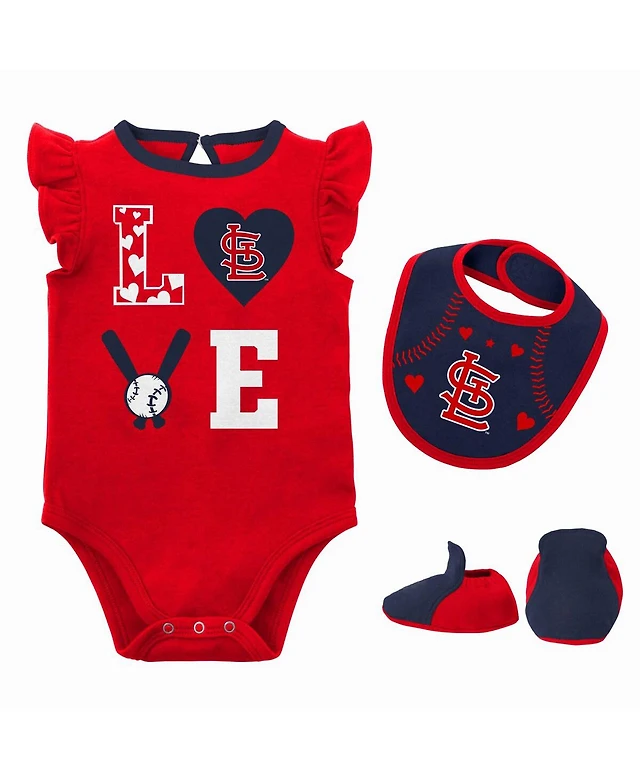 Newborn and Infant Boys Girls Red, Navy St. Louis Cardinals Three-Piece Love of Baseball Bib Bodysuit Booties Set