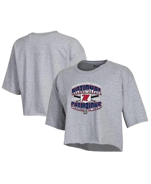 Women's Champion Heathered Gray Ole Miss Rebels 2022 Ncaa Men's Baseball College World Series Champions Locker Room Boyfriend Cropped T-shirt