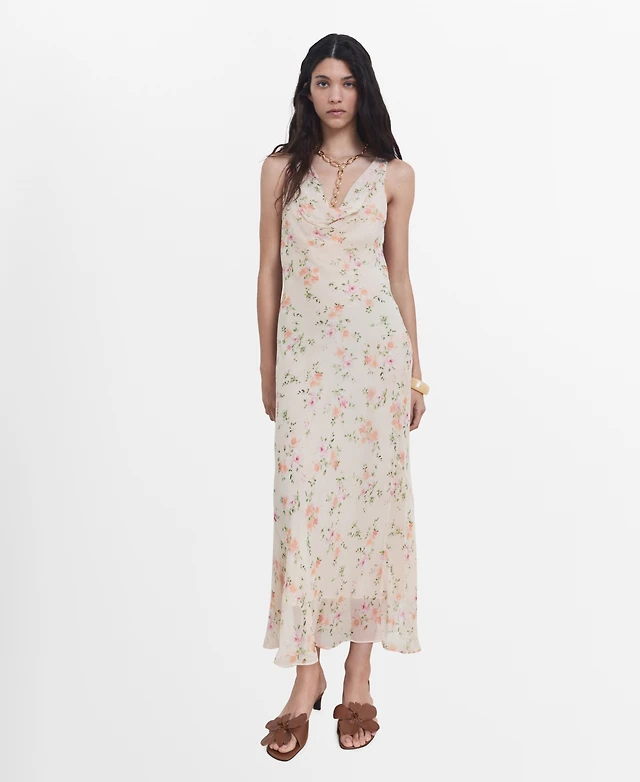 Mango Women's Short Draped Linen Dress