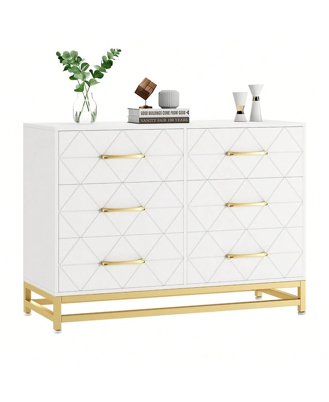 LuxenHome Mid-Century Modern Wave 6-Drawer 47.2-Inch Wide Dresser