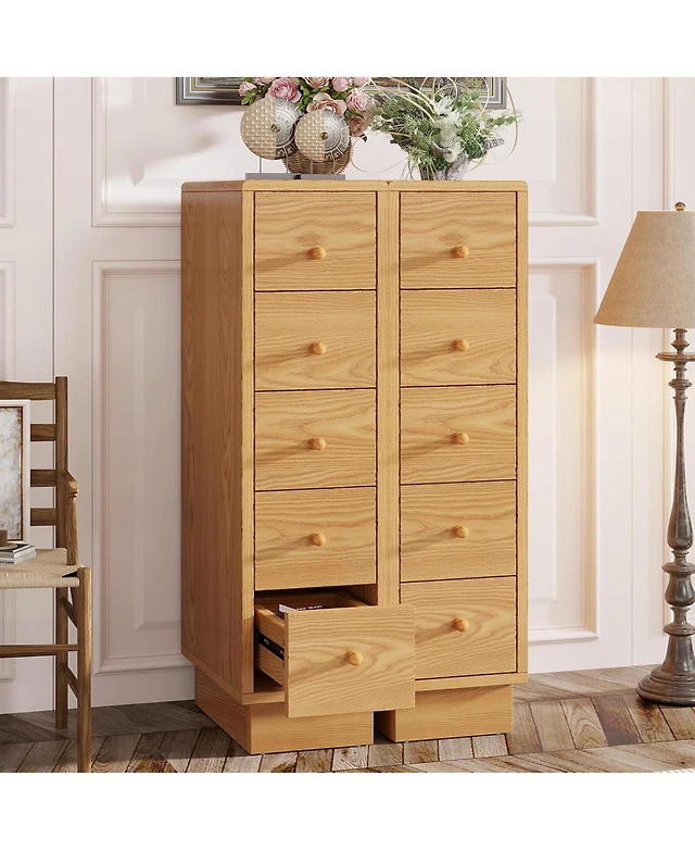 Famapy White 10-Drawer 55.1 in. W Wood Paint Finish Dresser Chest of Drawers Cabinet
