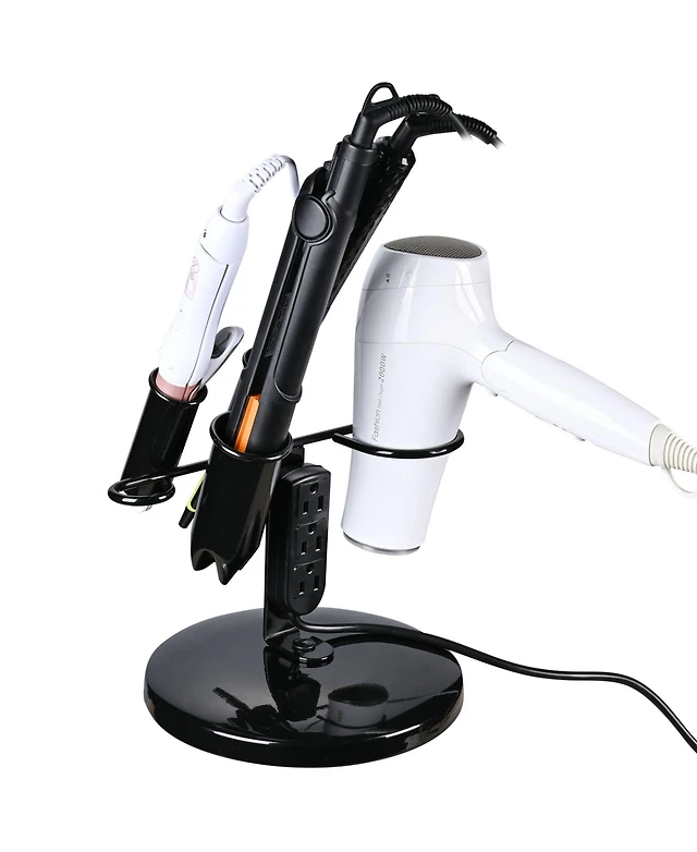 Byootique Desktop Salon Appliance Holder For Hair Dryer Curling Irons Stand w/ Plug Round Base