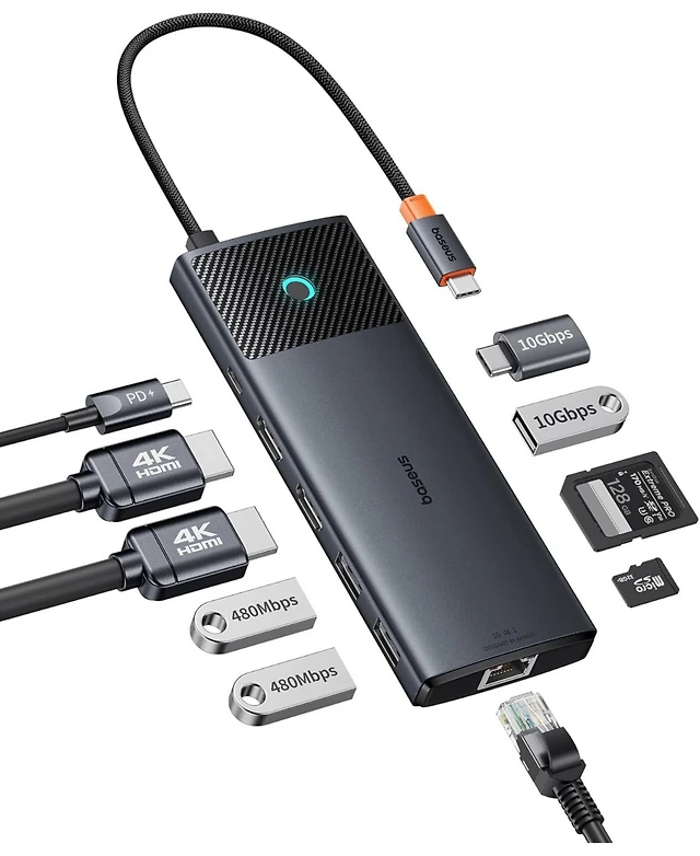 Baseus Docking Station Dual Monitor,10Gbps 10 in 1 Docking Station with 2 Hdmi Single 4K120Hz, Dual 4K 60Hz,10Gbps Usb C and Usb A